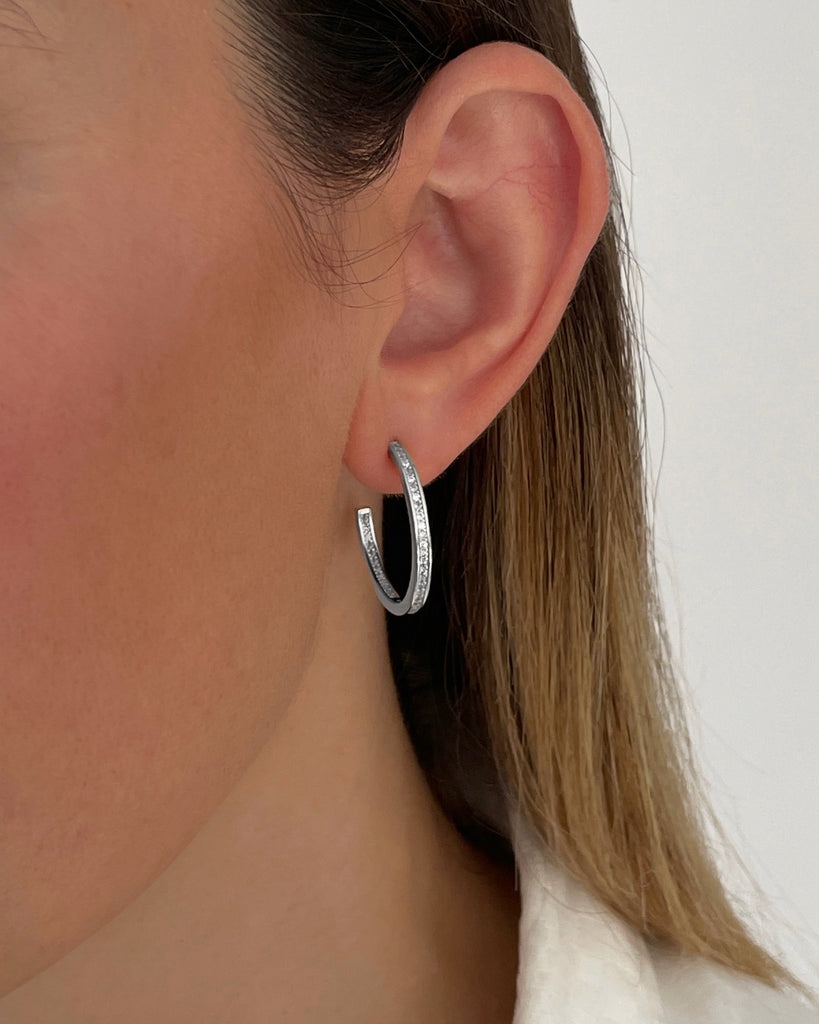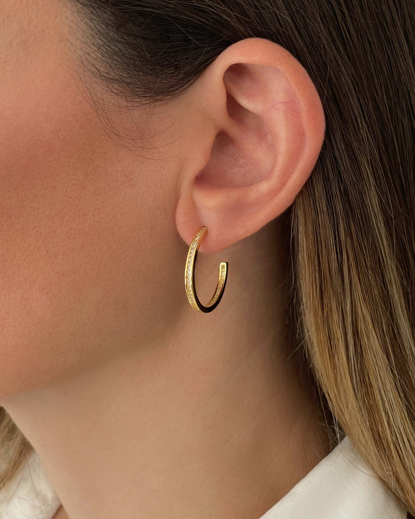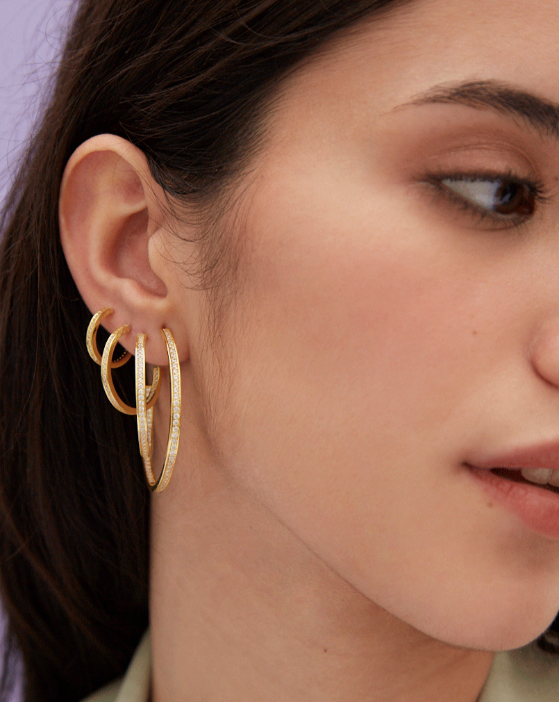 Para que la comodidad no riña con lo exquisito, hemos diseñado estos aros con circonitas blancas. Ligeros, cómodos y muy fáciles de poner, aportarán luz y atención a tu rostro. Delicadamente confeccionados en Plata de Ley 925 bañada en oro 18k y preciosas piedras de circonita incrustadas, te permitirán elevar el nivel de tu outfit solos o combinados con otras compañeras de tu joyero.