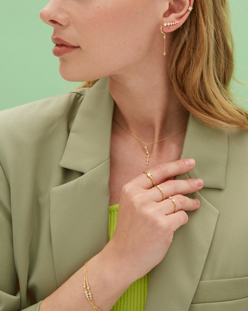 La confianza no solo brilla, resplandece. Con un estilo que atrae todas las miradas y transforma la calle en una pasarela, adopta accesorios que atrapan la luz y te colocan en el centro del escenario.