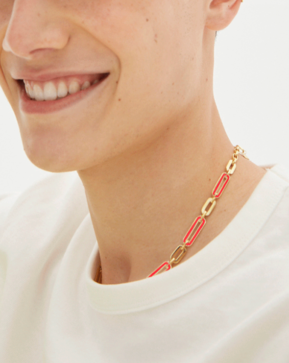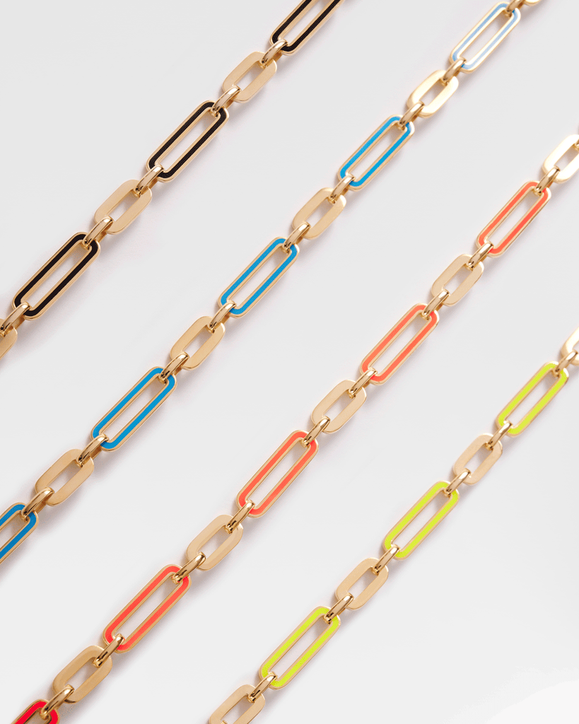 The 18k Gold Blue Link Necklace is a fun and trendy statement necklace that endows outfits with pristine elegance. A two-tone link necklace for the best of both worlds: charm and glamour.Exquisitely fashioned in high-quality 925 sterling silver dipped in 18k gold and pink enamel, this two tone link necklace features alternating, high-polish gold and pink links for a sophisticated and standout look you'll love on you